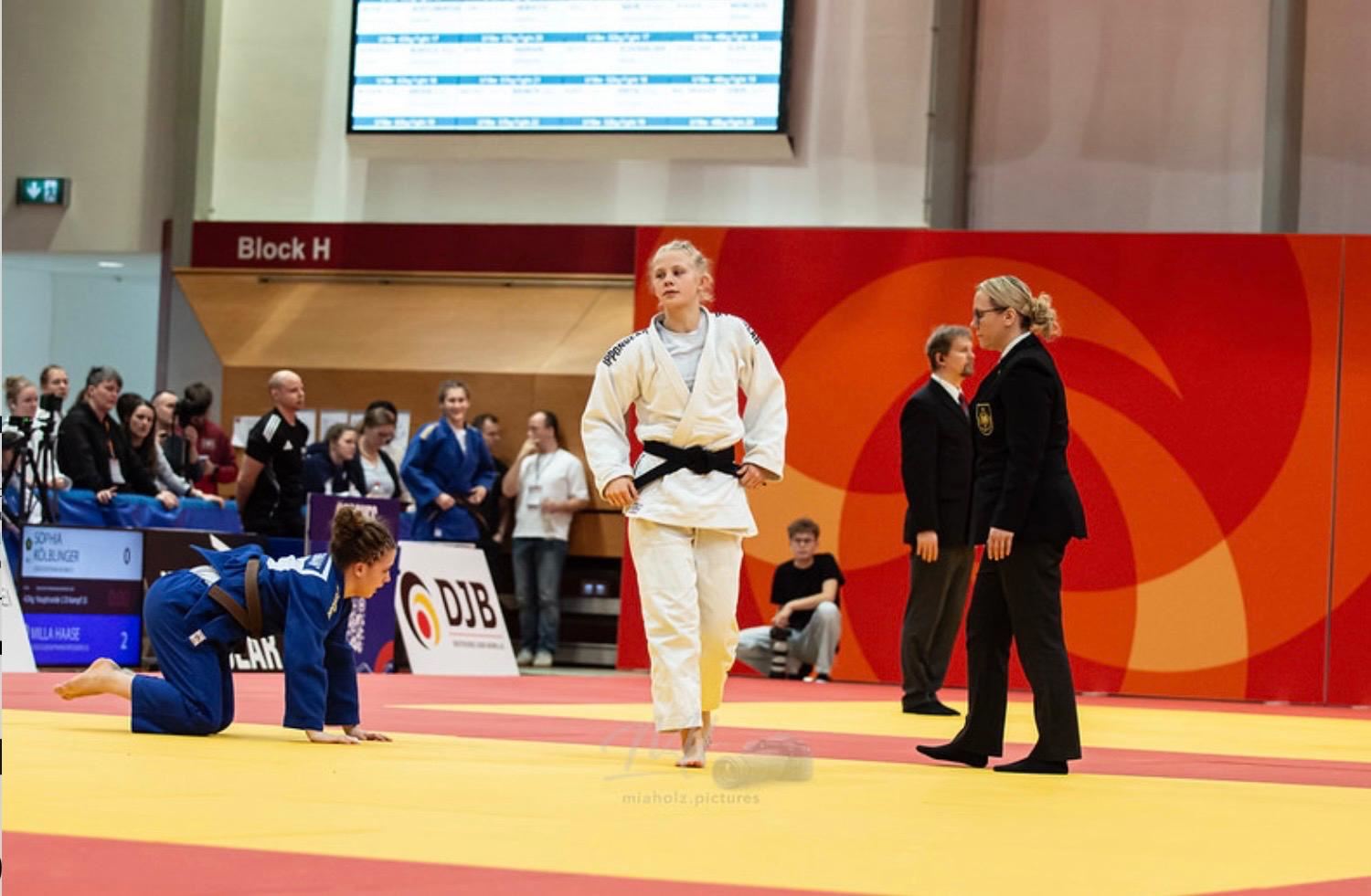 In derselben Gewichtsklasse konnte auch Elina Dilger (Budokan Lübeck) überzeugen. Unglücklicherweise kam es durch die Auslosung bereits im Halbfinale zum direkten Aufeinandertreffen der beiden Athletinnen aus Schleswig-Holstein. Damit stand früh fest, dass nur eine von ihnen den Weg ins Finale würde fortsetzen können. Ein mögliches Finalduell der beiden Schleswig-Holsteinerinnen blieb dadurch leider aus. Nach der Niederlage zeigte Elina Dilger großen Kampfgeist, arbeitete sich in der Trostrunde eindrucksvoll zurück und sicherte sich am Ende verdient die Bronzemedaille.