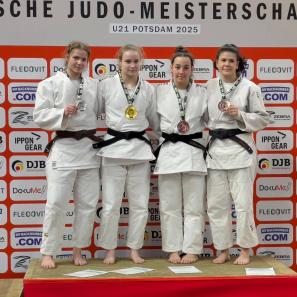 In der Gewichtsklasse bis 78 kg hatte der JVSH sogar zwei Eisen mit Titelchance im Feuer: Mia Manukyan (TSV Kronshagen) legte jedoch einen Fehlstart hin und unterlag Happe (NW). In der Trostrunde drehte sie dann aber richtig auf und siegte souverän gegen von Freymann (NI), Yilmaz (WÜ), Sotska (BA) und Werling (NW). Im Kampf um Platz 3 stand ihr dann wieder Happe gegenüber. Diesmal hatte Mia das bessere Ende für sich und siegte nach einem spannenden Duell im Golden Score. Bronze!