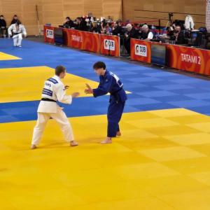 Für Max war dann in der Trostrunde Schluss. Er verlor mit 3 Strafen gegen Tulskykh (BE). Im Halbfinale gelang Felix ein Husarenstück und er bezwang seinen langjährigen Kontrahenten Wilhelm (NI) mit einem Konter und stand im Finale. Im rein Schleswig-Holsteiner Halbfinale standen sich Nikita und Teoman gegenüber. Das entschied Nikita recht schnell mit einer Fußtechnik für sich. Und so war das Kunststück geschafft, dass sich zwei Schleswig-Holsteiner Vereinskollegen im Finale gegenüberstanden. Der Kampf war sehr lange ausgeglichen und die Entscheidung musste dann im Golden Score gefunden werden. Nach einem Angriff von Felix übernahm Nikita diesen und konterte Felix. So wurde Nikita Deutscher Meister und Felix Deutscher Vizemeister. Im kleinen Finale verlor Teoman dann leider knapp gegen Tulskykh (BE) und wurde undankbar Fünfter.