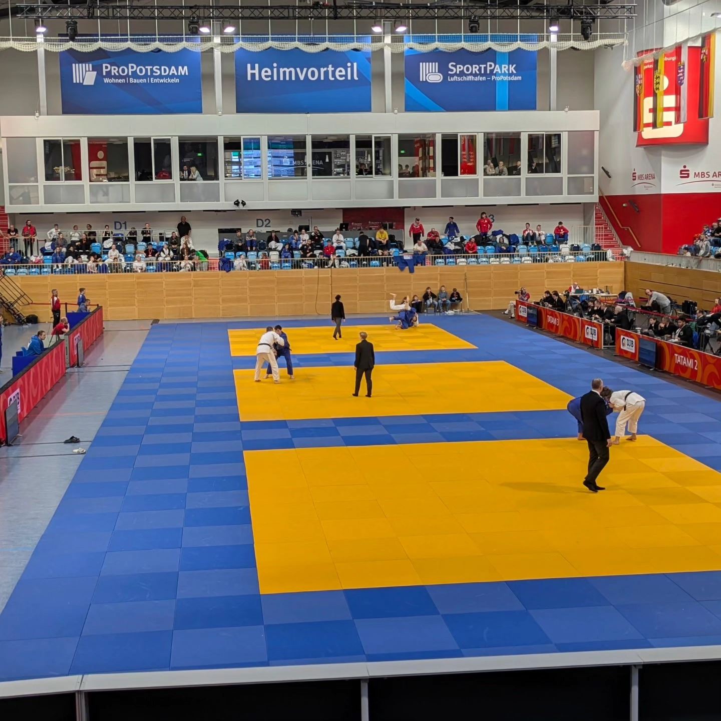 In der zweiten Runde verlor Max leider gegen Wilhelm (NS) im Würger. Felix gelang gegen Deutschländer (BB) ein O-goshi, Nikita gewann gegen Nocke (NW) mit einem Haltegriff und Teoman mit einer Hüfttechnik im Golden Score.