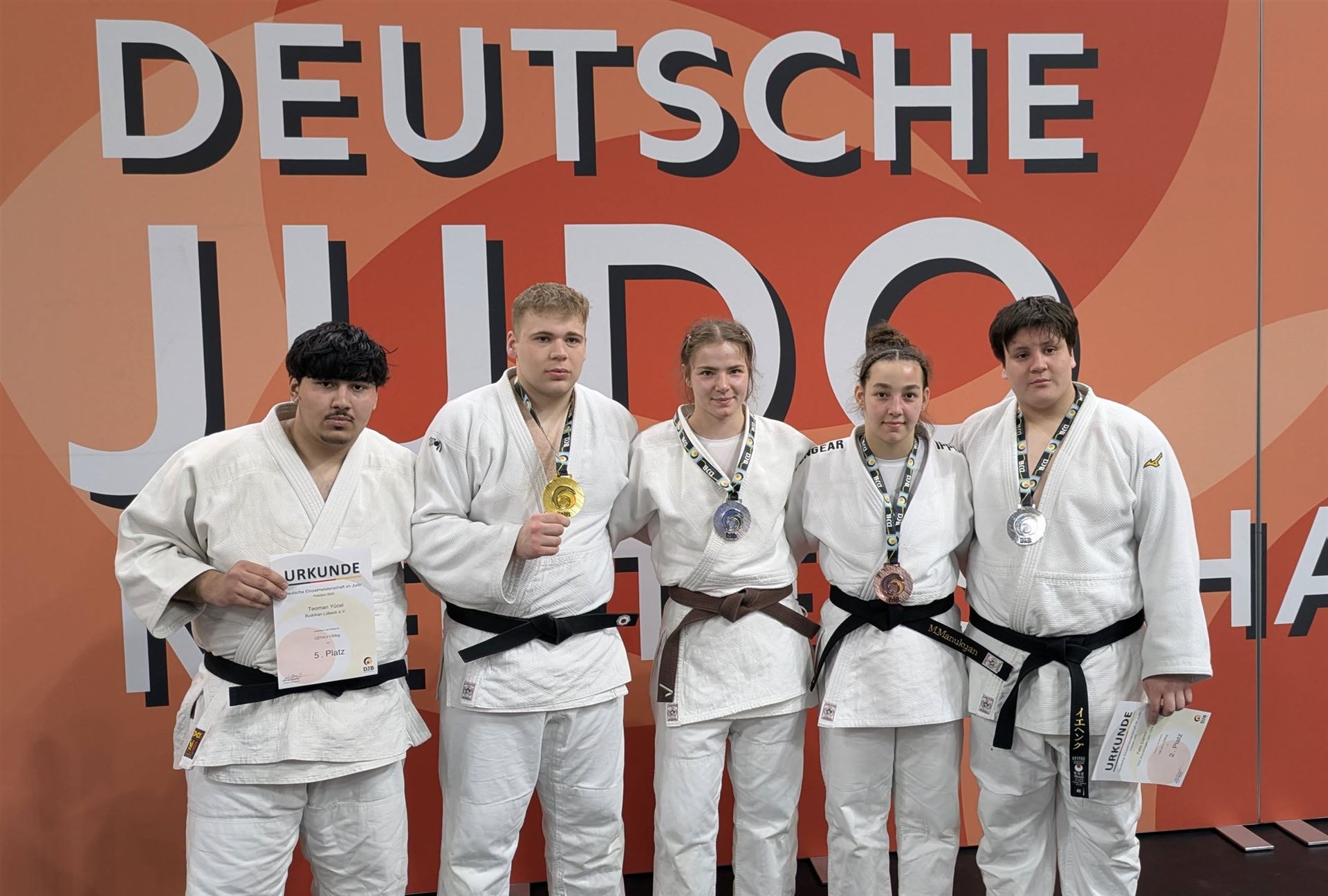 Felix Düring (Budokan Lübeck, bis 60 kg) verlor relativ schnell gegen den späteren Deutschen Meister Cabecana (NW), in der Trostrunde gelangen ihm zwei Siege gegen Volkel (TH) und Skakalin (BY) ehe er dann gegen Burmann (HE) aus dem Turnier ausschied.