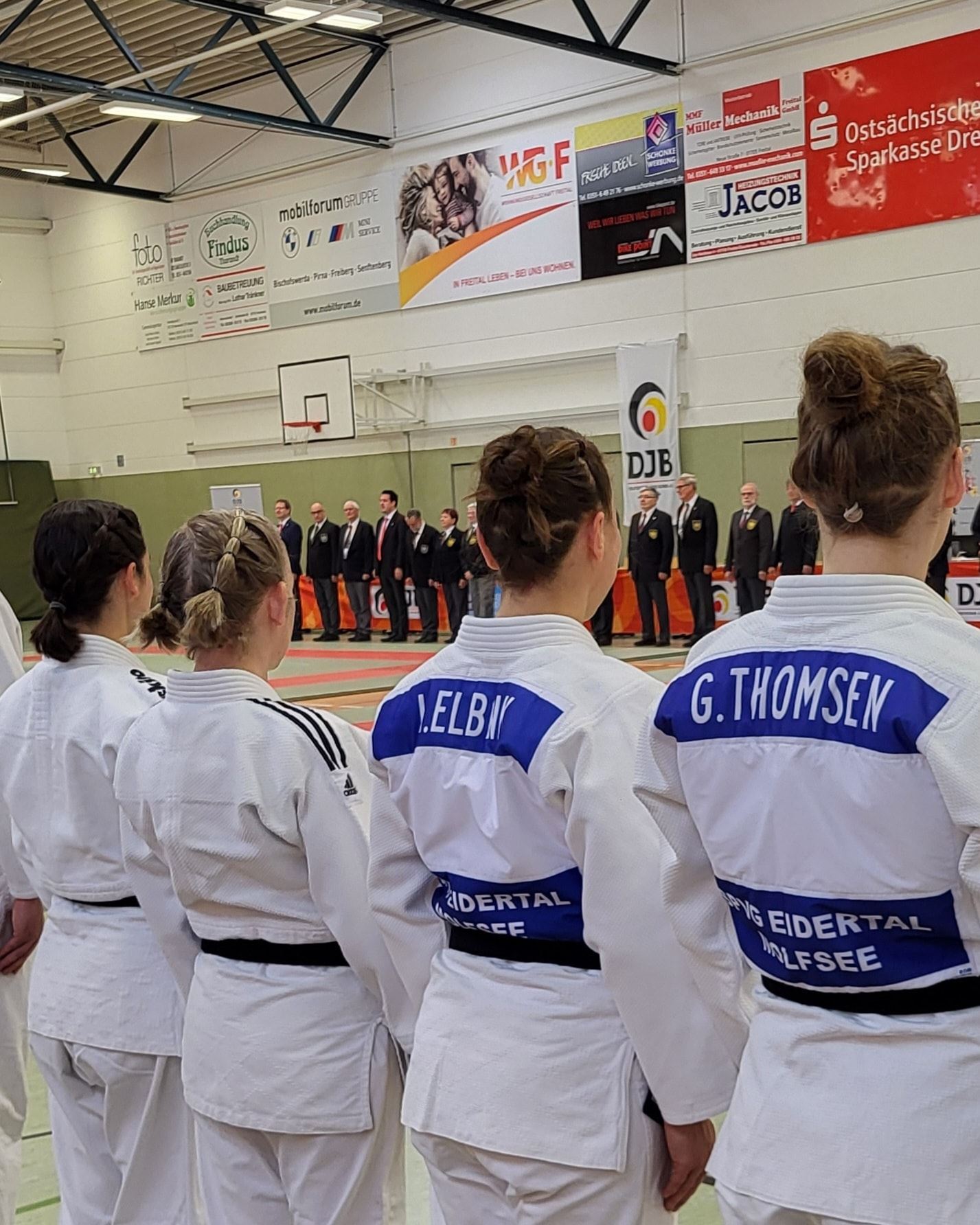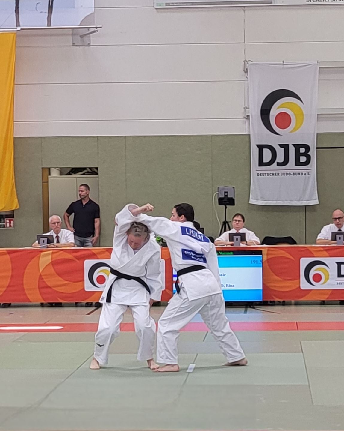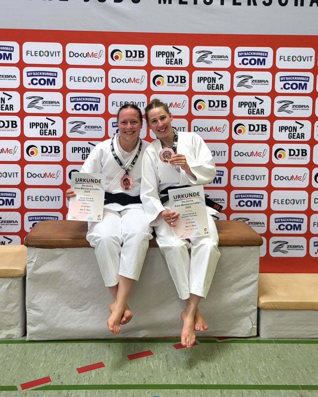 Am Sonntag ging es mit der Ju no Kata weiter – der am stärksten besetzten Kata mit 18 Paaren. Leonie Peukert und Rina Rosenfeld stellten sich dem Wettkampf, obwohl sie die Kata erst seit kurzem gemeinsam trainieren. Ihre mutige Teilnahme wurde belohnt: Platz acht bei dieser Konkurrenz ist ein beachtliches Ergebnis.