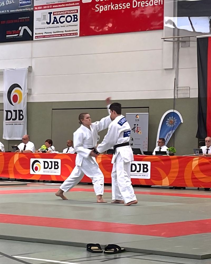 Bereits am Samstag starteten Jessica Grosse Frericks und Johannes Howe in der ID-Katame no Kata. Mit einer deutlichen Leistungssteigerung im Vergleich zum Vorjahr erreichten sie einen starken fünften Platz – eine tolle Entwicklung, auf die sie stolz sein können.