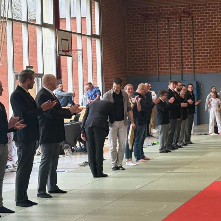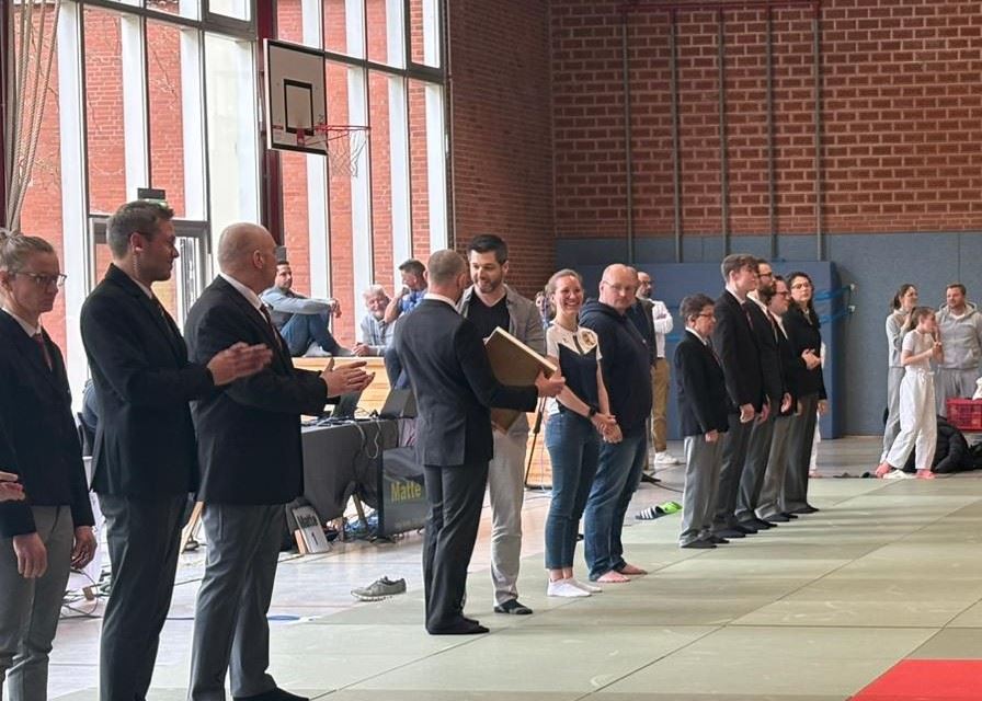 Am 18. April nutzte unser Vizepräsident Janek Brütt die Bezirkseinzelmeisterschaft Süd der U11 und U13, um unseren Bezirks-Kampfrichterobmann, Erik Schefer, die goldene Ehrennadel des Judo-Verbands Schleswig-Holstein überreichen zu dürfen. Der Verband möchte Erik für seine langjährige Tätigkeit als Kampfrichter, für sein Engagement im Bezirk, aber auch auf Landes- sowie auf Bundesebene, ehren. Ebenfalls dankt der Landesverband ihm für seine Mühen in der Kampfrichter-Ausbildung sowie für das Installieren und und Einführen des Care-Systems für die Kampfrichter.
