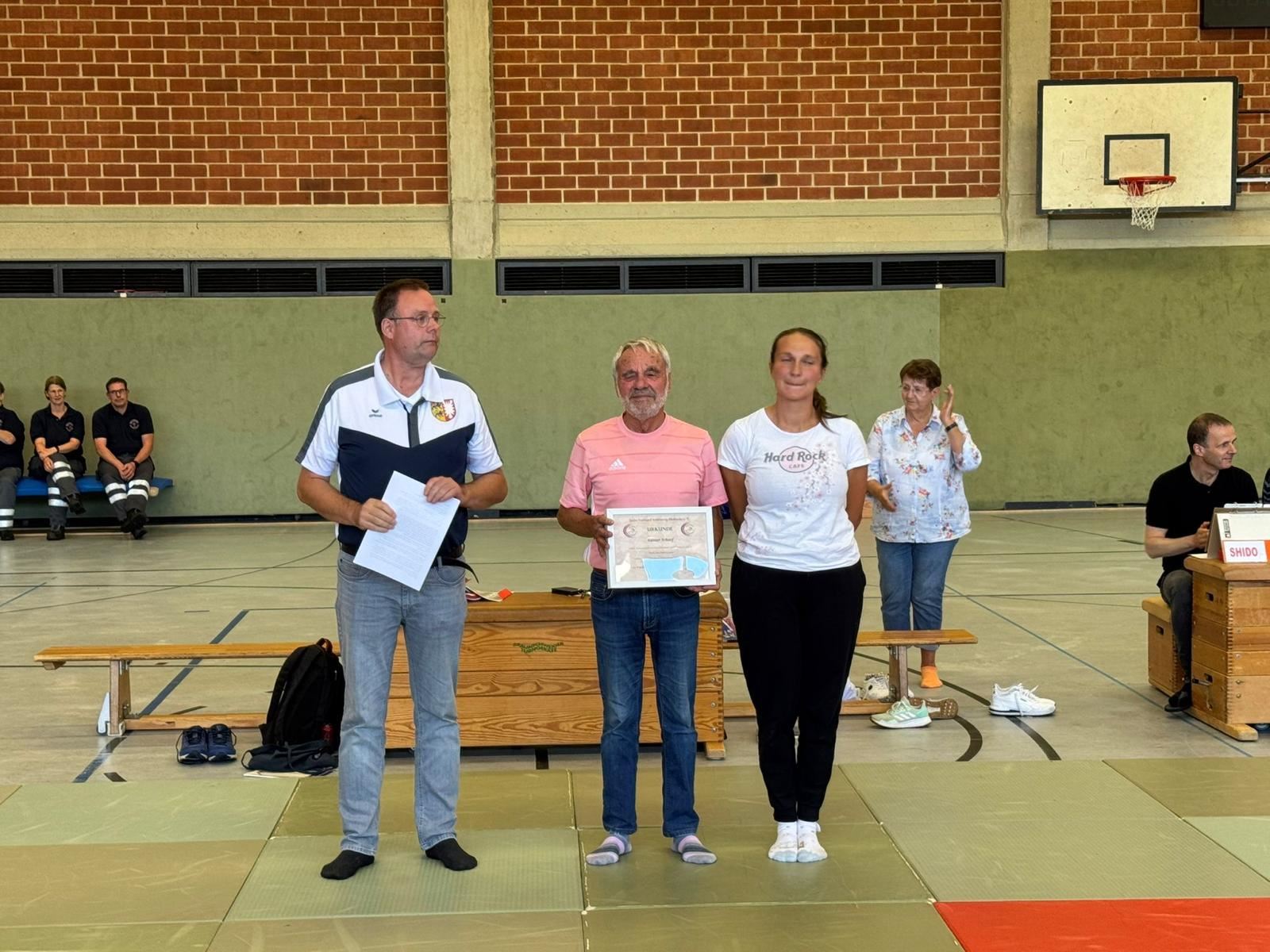 Aufgrund der herausragenden Verdienste und der langjährigen unermüdliche Arbeit für den Judosport im Judo Verband Schleswig-Holstein, durfte Präsident Thorsten Lange im Rahmen der Landeseinzelmeisterschaften den 5. Dan Grad im Judo an Günter Scharf verleihen.