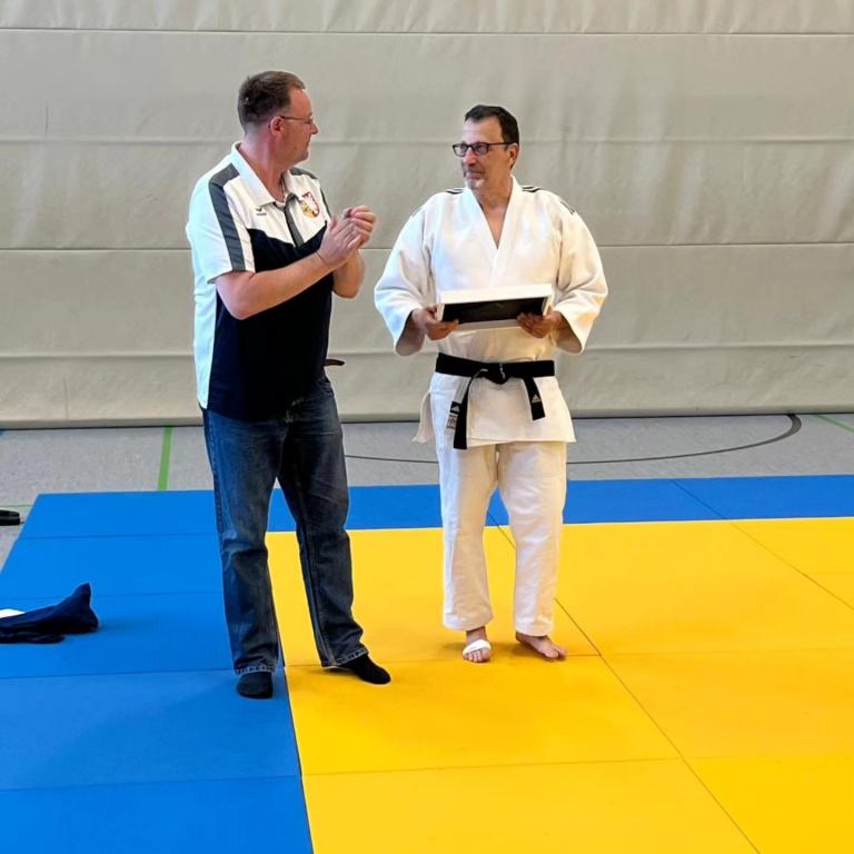 Am 09. Mai wurde Thomas Schraga feierlich der 4. Dan durch unseren Präsidenten Thorsten Lange verliehen! Eine Auszeichnung, die nicht nur seine sportliche Leistung würdigt, sondern vor allem sein jahrzehntelanges Engagement für unseren Judosport.