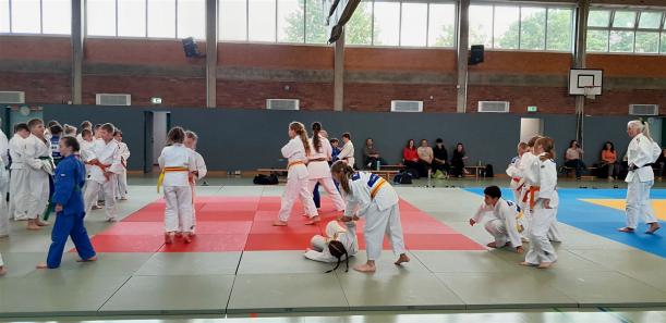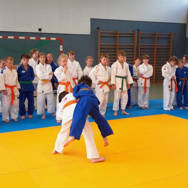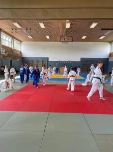 Nach dem ersten Aufwärmspiel, wurden zunächst wieder die koordinativen Fähigkeiten herausgefordert, anschließend ordentlich in allen Judovarianten gerollt, bevor es dann ans Werfen ging. Mit verschiedenen Partnern wurden unterschiedlichen Bewegungs- und Wurfrichtungen gemeistert.