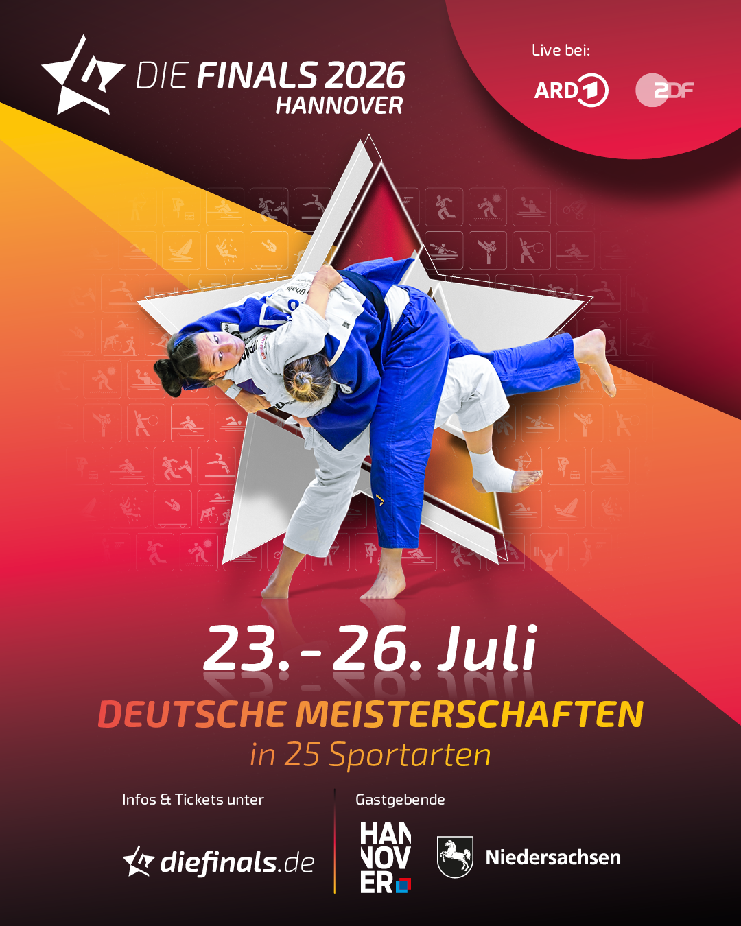 Bei den Finals 2026 Hannover vom 23. – 26. Juli werden insgesamt 143 Deutsche Meistertitel in 24 Spitzensportarten vergeben. Am 25. Juli stehen die Deutschen Mixed-Team-Meisterschaften der Landesverbände im Judo im Mittelpunkt.