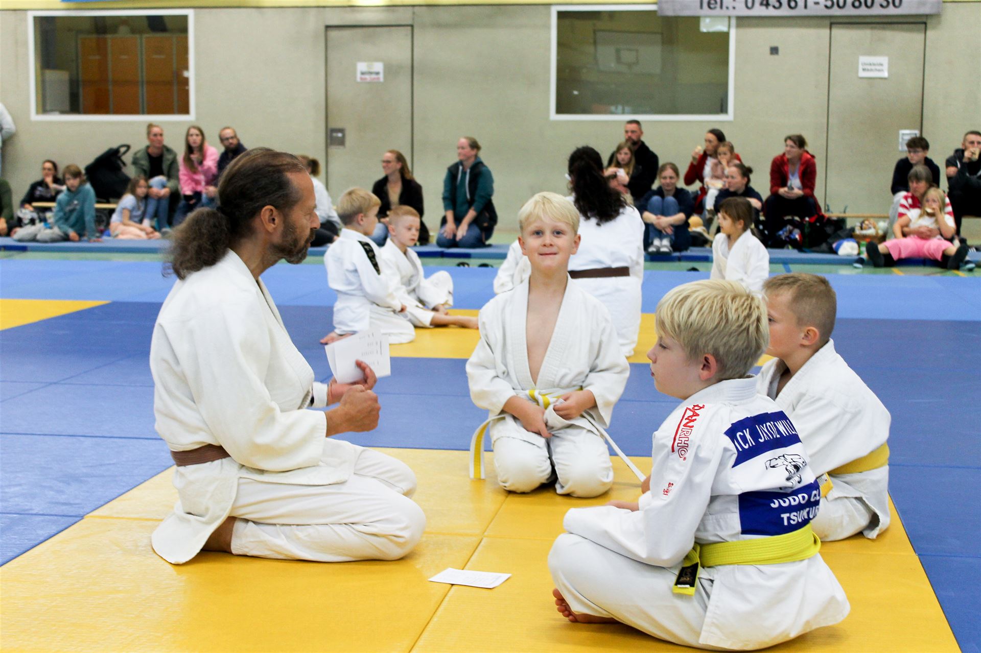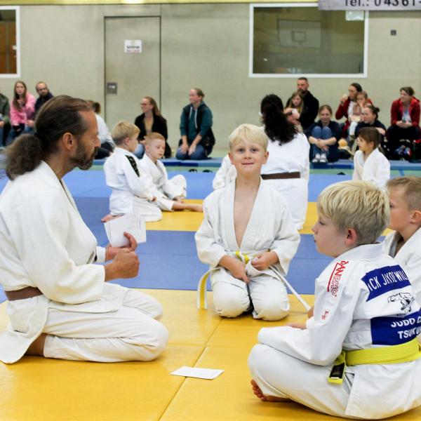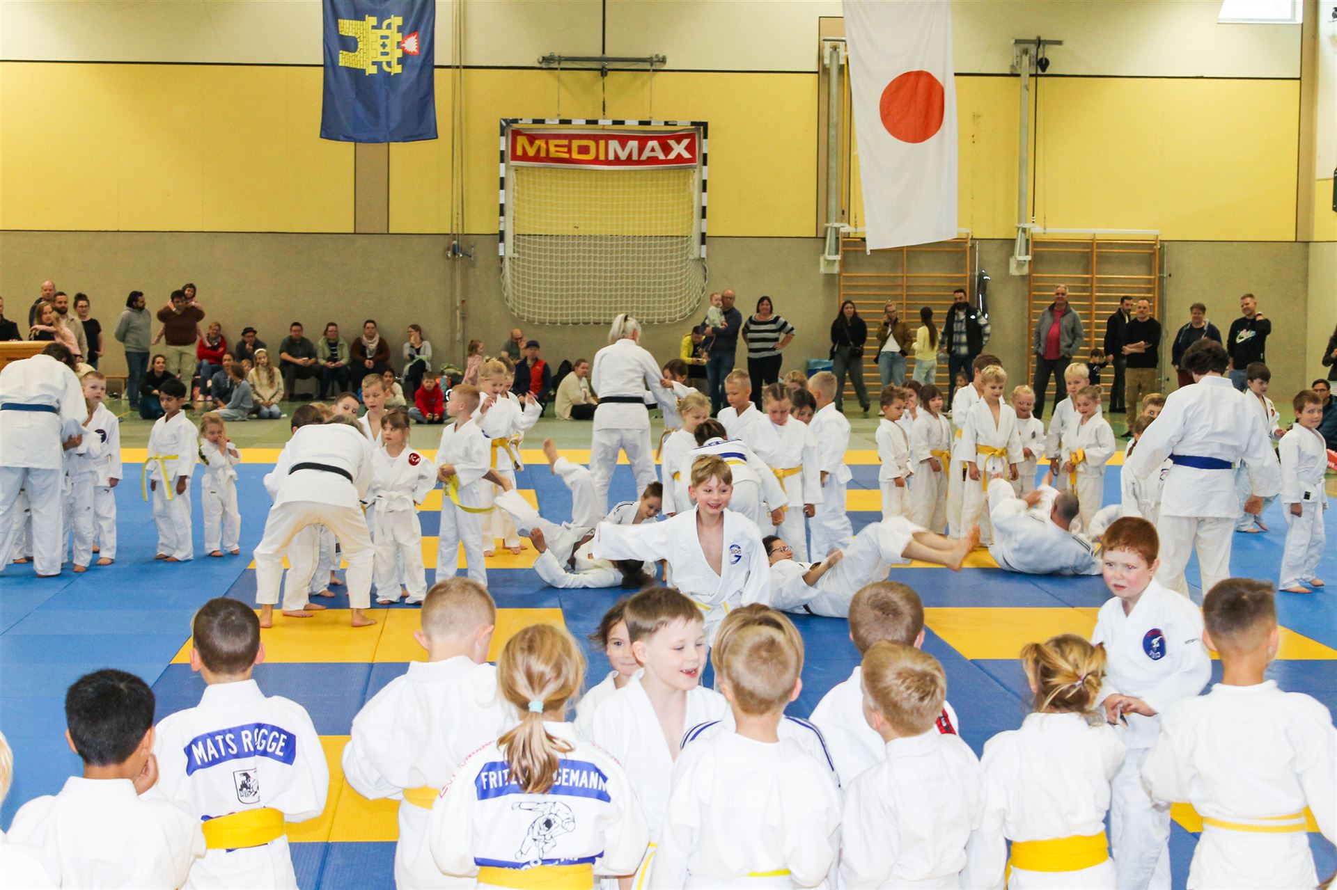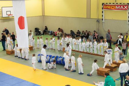 Am 27. September tobten 91 kleine Judoka beim Kuschelturnier über Oldenburger Matten. Nach einer gemeinsamen Aufwärmphase, in der spielerisch der erste Kontakt mit den Mattenbegleitern hergestellt wurde - diese wurden als Tunnel, Böcke und Wurfpartner genutzt - machten diese dann in kleinen Gruppen ihre ersten Wettkampferfahrungen. Für die wartenden Kinder war ein Parcours zum Klettern und Balancieren aufgebaut und die Eltern konnten sich die Zeit mit den Köstlichkeiten der Cafeteria vertreiben. Anschließend durfte sich dann jedes Kind das ersehnte und verdiente Kuscheltier mitsamt Urkunde aussuchen und es gab jede Menge strahlende Gesichter.