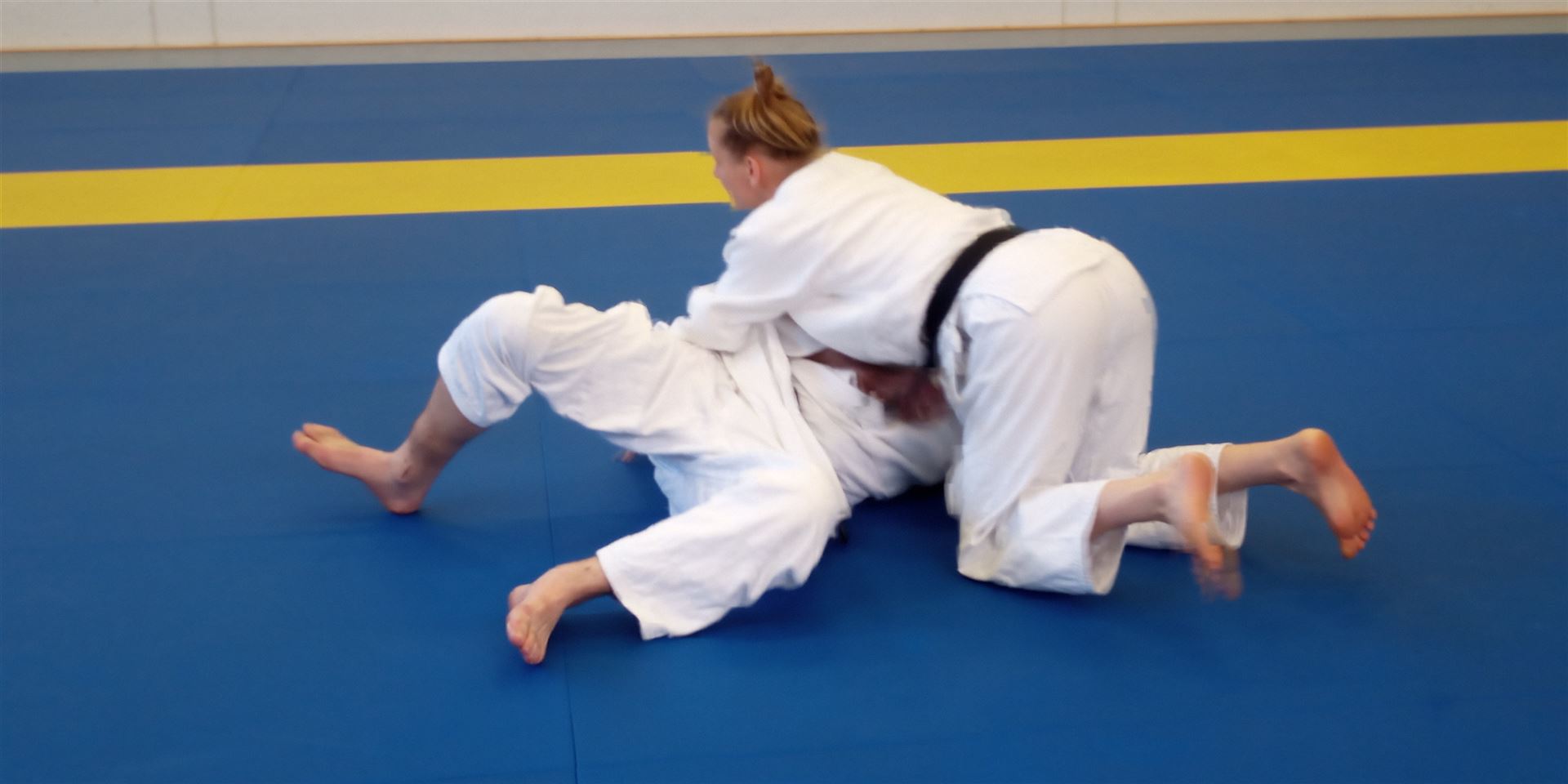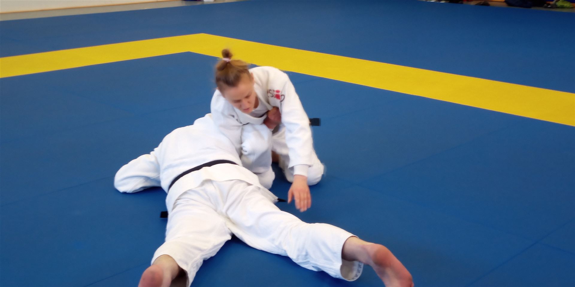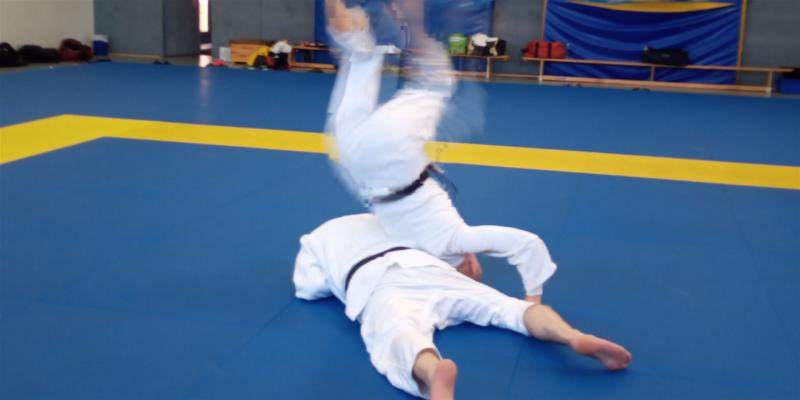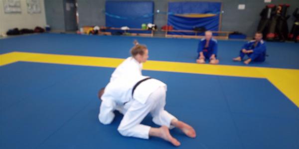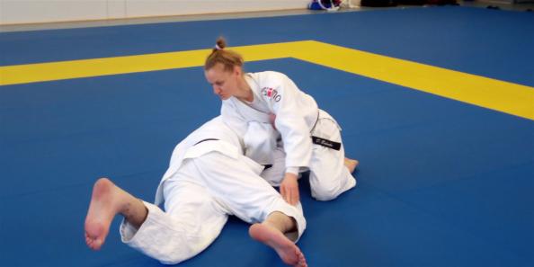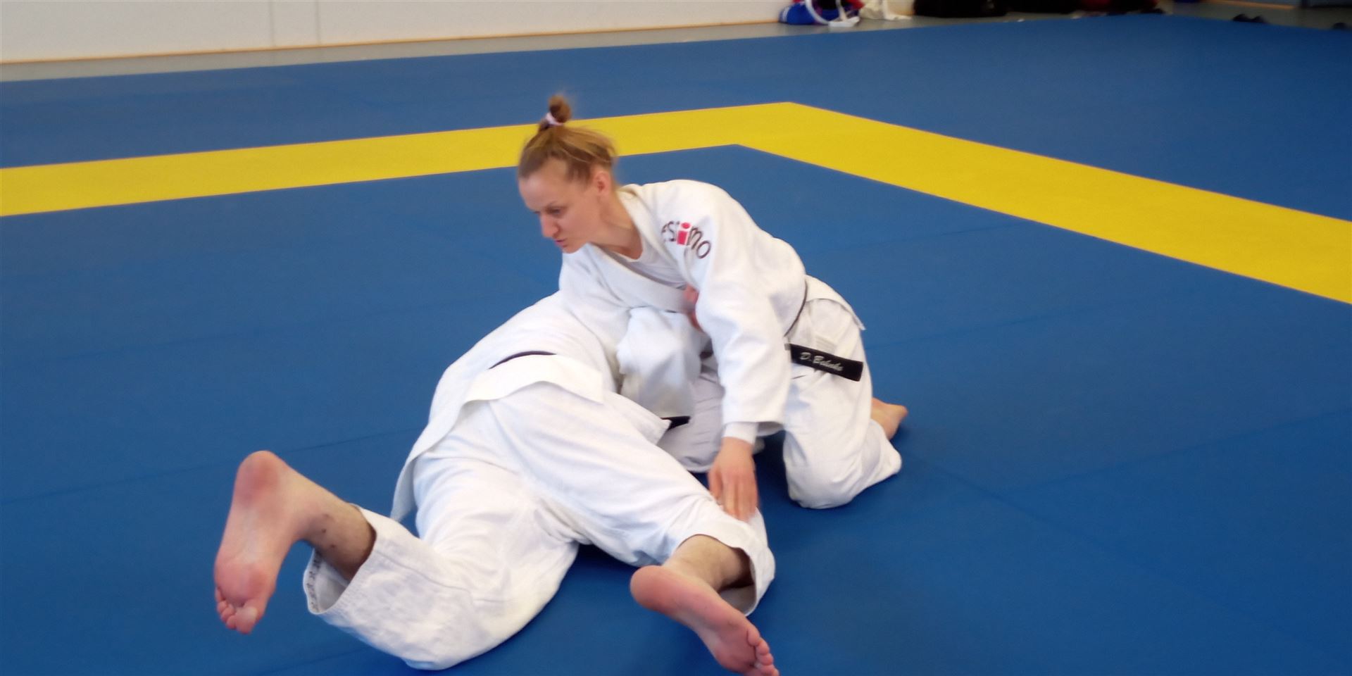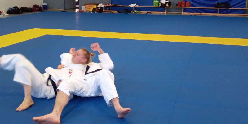 Die Trainings-Einheit am 14. Oktober von 10-12 Uhr leitete Daniela Behnke, amtierende Landesmeisterin der Frauen bis 63kg.Dani weiß, dass auch Erwachsene gerne Spiele spielen und startete ihre Warm up Einheit mit Ticker- und Kampfspielen. Danach folgten spielerische Übungen zur Fallschule, eine sehr gelungene Mischung aus Klassik und Moderne. Dann wurde von Daniela und Torben gezaubert: In einer kurzweiligen Bodeneinheit brachten sie uns „die Gurke“, „das Gürkchen“ und den „Gurken-Eintaucher“ als Angriffs- als auch Kontervariante bei. Zu guter Letzt zeigten sie noch eine Kombination dazu die „Baumstammrolle“ bzw. den „Handstand“ über Uke hinweg zum Ura-gatame Haltegriff. Die Bilder beweisen das. Nach einem kurzen Einwerfen, wobei das Kuzushi im Vordergrund stand, folgten Randoris im Stand. Im Abschlussteil wurden die müden Muskeln unter Danis Anleitung durchgekneteten und gestreckt.