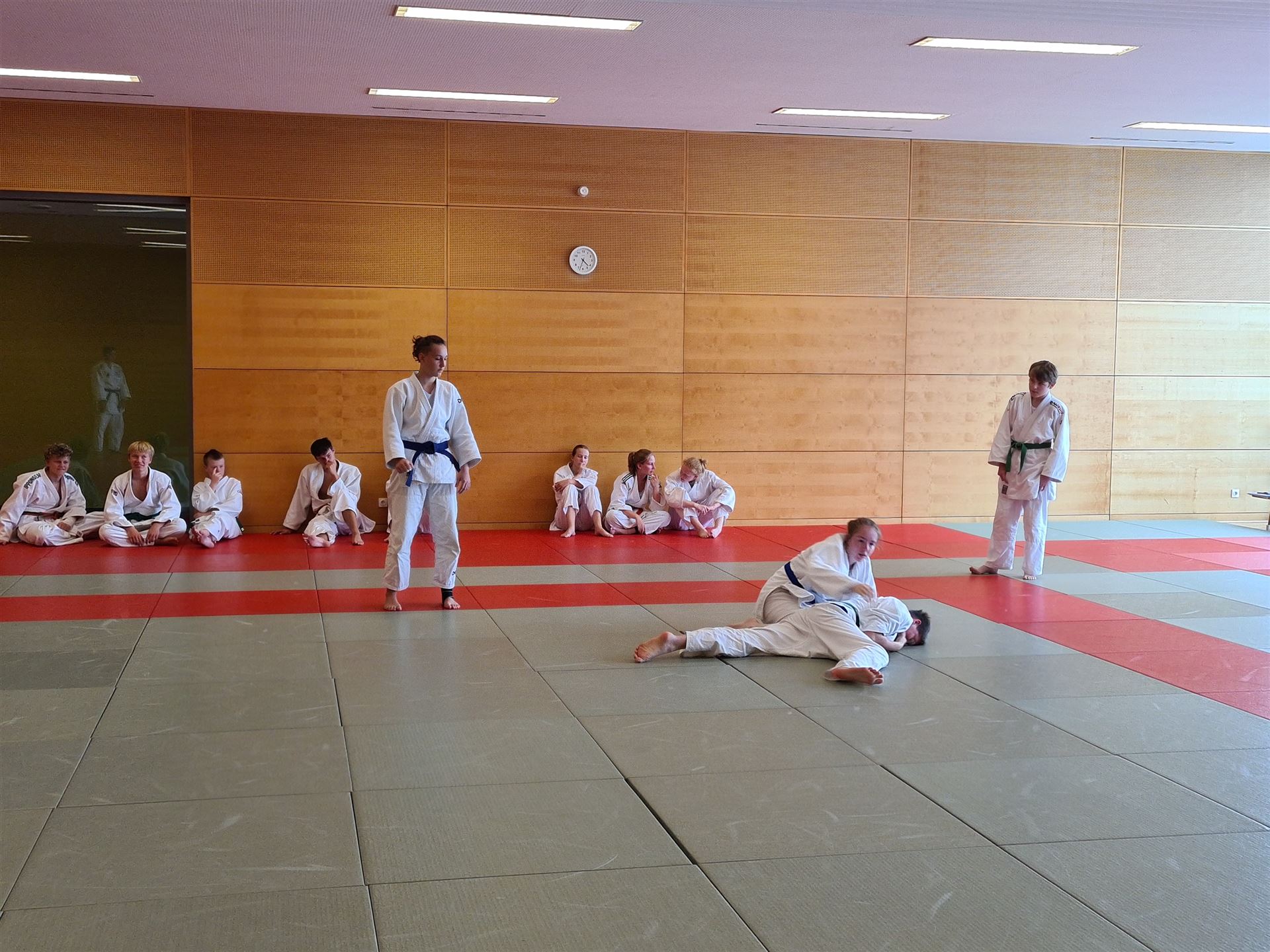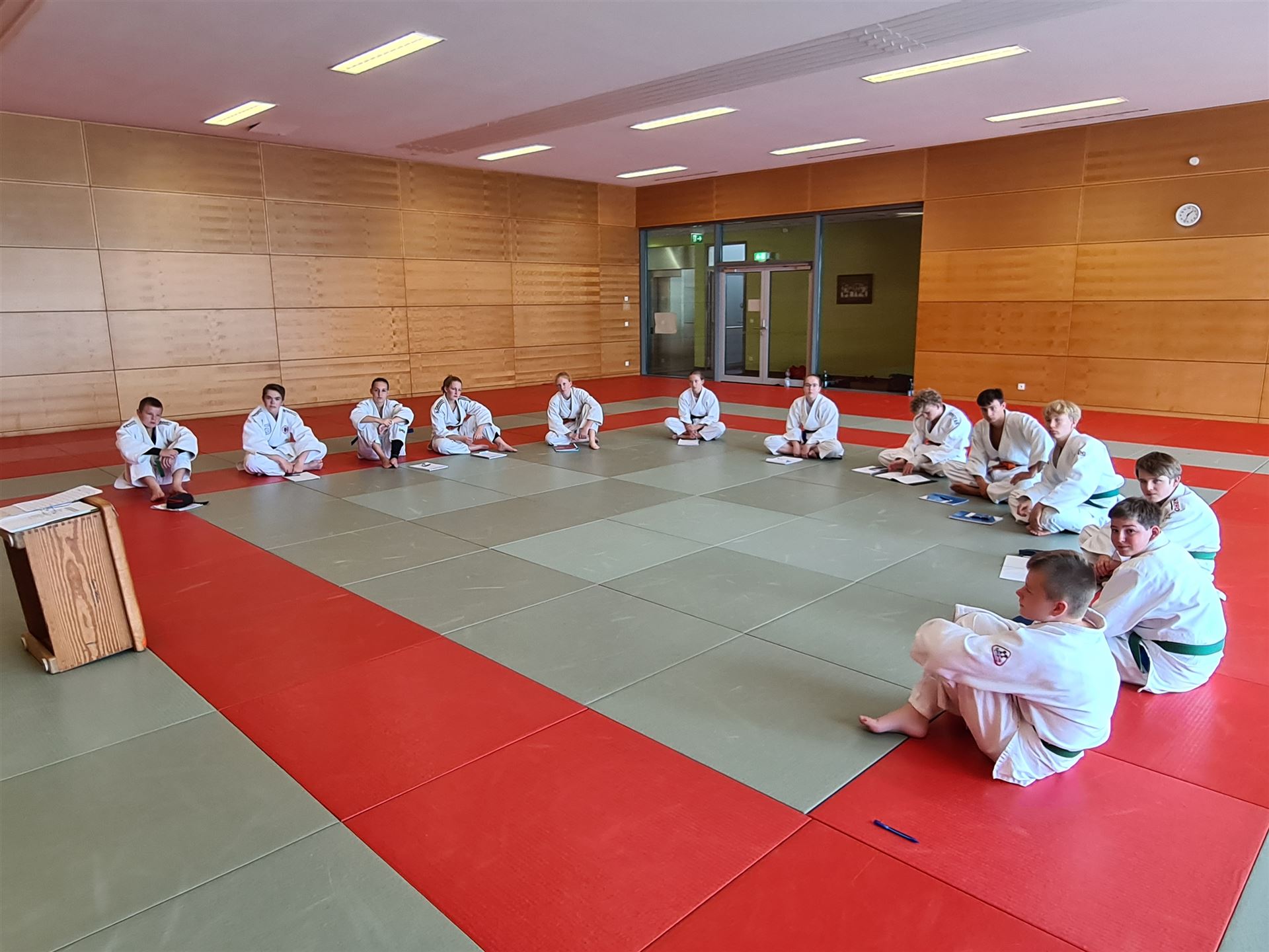 Bewusst ausgeklammert sind formale Dinge sowie das Thema Hebeln und Würgen, da dies in der untersten Altersklasse nicht von Bedeutung ist. Bei diesem Lehrgang wurden auch gemeinsam Aufgaben zum Thema Mattenrand und die Themenkomplexe der Sonderregeln für die U11/12 praktisch erarbeitet. Den Abschluss und nicht unwesentlichen Teil findet der Lehrgang darin, dass jeder als Kampfrichter und Außenrichter aktiv wird.