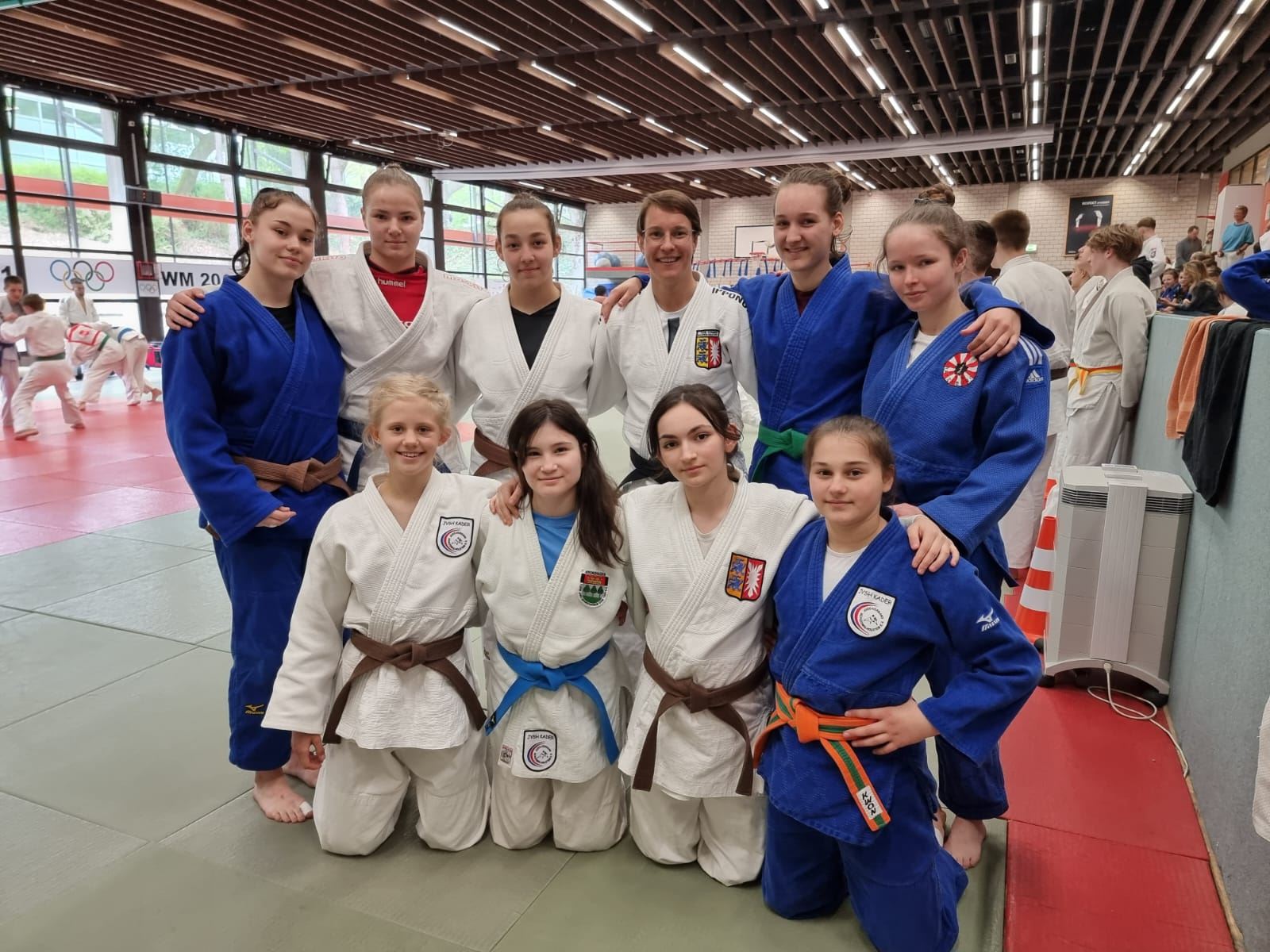 Am Samstag, den 22.04.2023, kämpften die Mädchen U16 auf dem Bundesssichtungsturnier in Düsseldorf. Mit acht Athletinnen war der JVSH vertreten. Elina Dilger konnte zwei Kämpfe in der Gewichtsklasse +70 kg vorzeitig für sich entscheiden, verlor dann aber gegen deutlich schwerere Gegnerinnen unglücklich. Trotz der Niederlagen erreichte sie einen guten 3. Platz. Anna Zakrzewska trat in der stärksten besetzten Gewichtsklasse bis 63 kg an. Den ersten Kampf gewann sie vorzeitig, verschenkte dann aber den zweiten Kampf. Kampf drei, vier und fünf dominierte sie in der Trostrunde dann klar, wurde aber im letzten Kampf nach "diving" (Beim Wurf mit dem Kopf zuerst auf der Matte aufgekommen) disqualifiziert und wurde siebte.