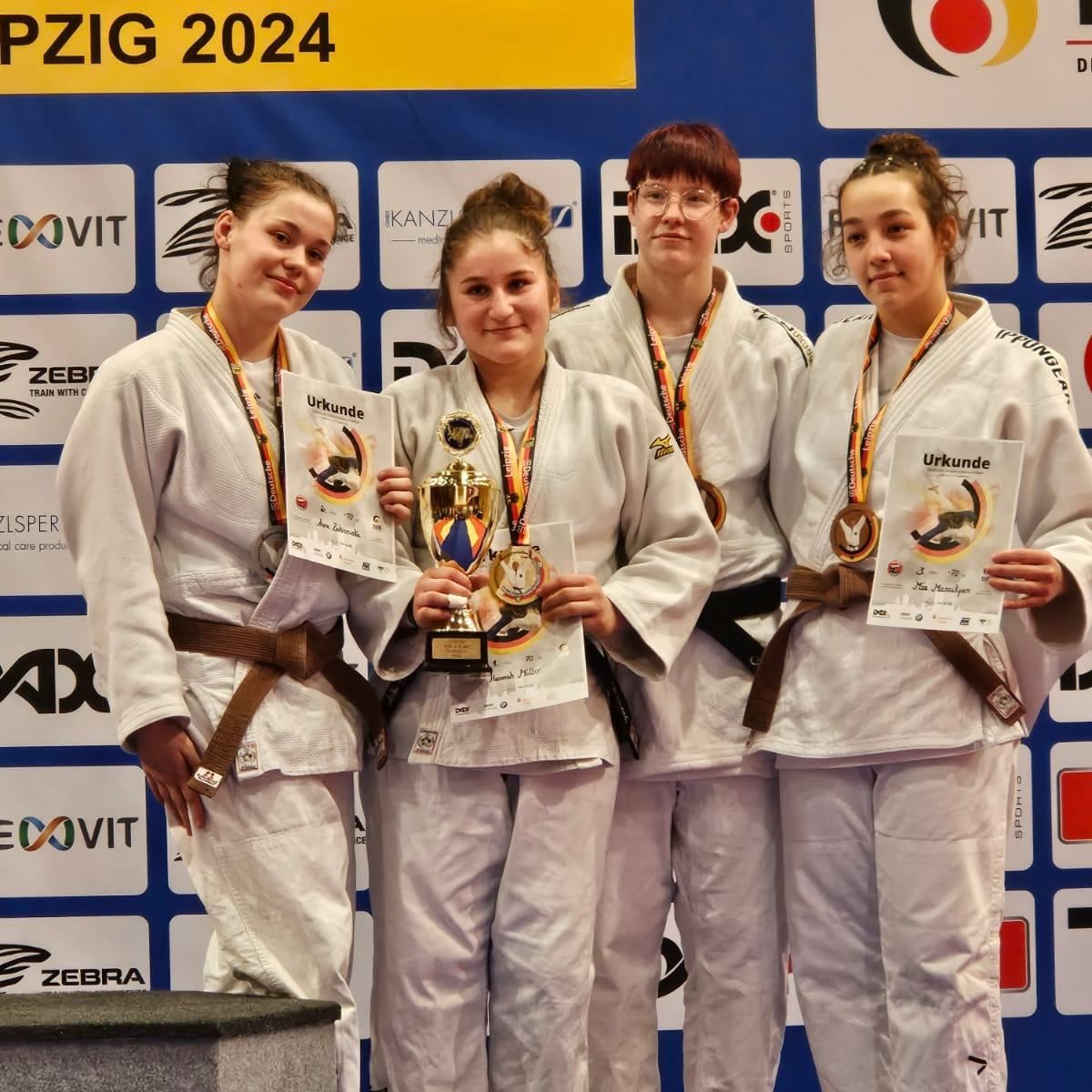 Nachmittags starteten Anna Zakrzewska (Randori Team Molfsee), Mia Manukyan (TSV Kronshagen), beide bis 70 kg, und Elina Dilger bis 78 kg (Budokan Lübeck). Anna gewann vier Kämpfe vorzeitig. Den Ersten mit zwei Waza-ari durch Wurftechniken, den Zweiten mit Ippon durch eine Würgetechnik, den Dritten wieder mit zwei Waza-ari durch Wurftechniken und den Vierten mit einem Bilderbuch Ura-nage mit Ippon. Somit stand sie im Finale. Gegen ihre gut auf sie eingestellte Gegnerin musste sie sich aber nach der Hälfte der Kampfzeit geschlagen geben und wurde Zweite.