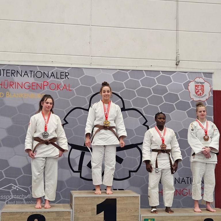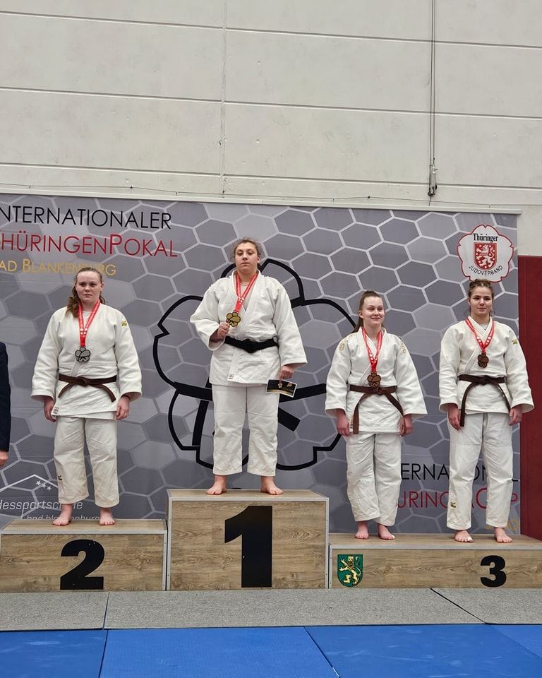 Am 23.03. waren unsere Mädels mit unserer Landestrainerin Hanna in Bad Blankenburg unterwegs. Mit top Leistungen konnte Mia aus Kronshagen sich in der Gewichtsklasse bis 70 kg Gold sichern! Auch für Elina aus Lübeck ging es auf das Treppchen. In der Gewichtsklasse +70 kg (sonst immer bis 78 kg) sicherte sie sich die Bronzemedaille. Für Josephine aus Eutin und Anna aus Molfsee lief es leider nicht wie erhofft. Für Elina, Josie und Mia ging es anschließend weiter im Trainingscamp. So konnten die drei auf ihren Leistungen vom Wochenende aufbauen und gemeinsam mit unserer Landestrainerin am Wettkampfstil feilen.