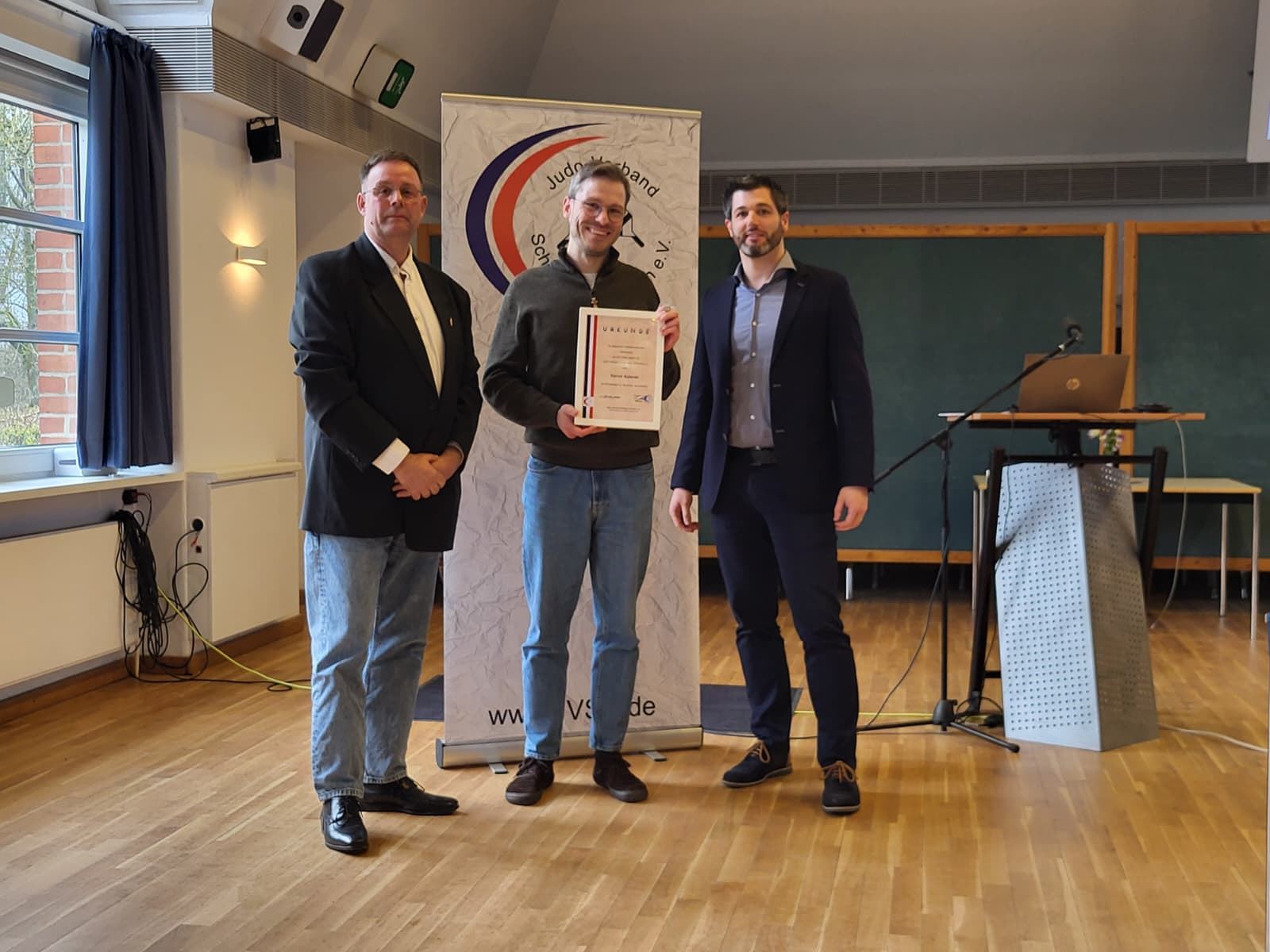 Am 28. März lud der Judo-Verband Schleswig-Holstein zur Jahresmitgliederversammlung 2026 im Haus des Sportes in Kiel ein. Die starke Beteiligung zeigte sich besonders in der rekordverdächtigen Teilnehmerzahl: Insgesamt waren zu Beginn 133 Stimmen vertreten. Unser Präsident Thorsten Lange eröffnete die Versammlung, gefolgt von den Grußworten des Vizepräsidenten des Landessportverband Schleswig-Holstein e. V. Hans-Jürgen Kütbach und der Videobotschaft des Präsidenten des Deutscher Judo-Bund e. V. Thomas Schynol.