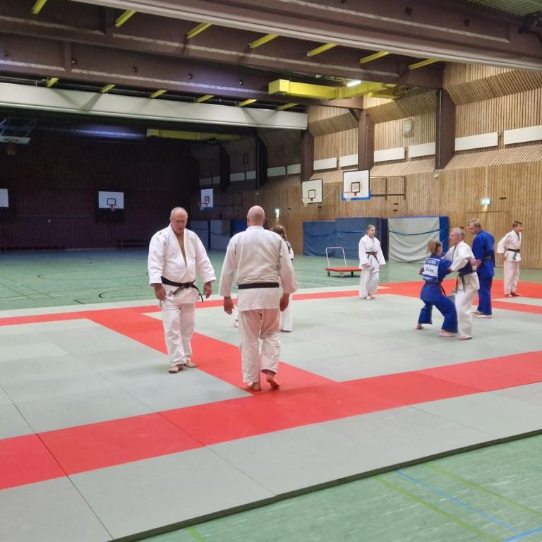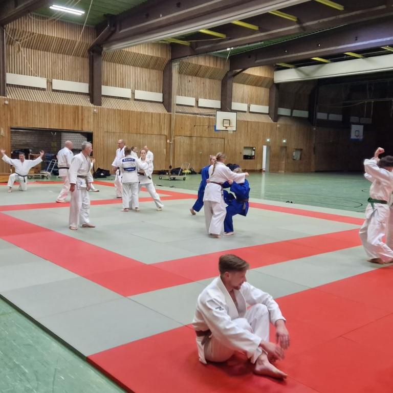 Auch am 04.11.2023 steht wieder Kata in Neumünster-Einfeld auf dem Programm. Mit über 20 Judoka ging es am Samstag auf die Matte. Hierzu lud unser DKSH-Kata-Referent Janek den Hamburger Kata-Referent Sönke Schillig ein. Mit einer kurzen Laufeinheit und der ersten Gruppe der Seiryoku-Zen’Yo-Kokumin-Taiiku wurde sich gemeinsam unter Anleitung von Sönke aufgewärmt. Anschließend ging es in für die Judoka in ihre jeweiligen Kata. Neben der Nage no kata und Katame no kata, wurde auch wieder die Kime no kata und Kodokan goshin jutsu trainiert. Als Kime no kata Spezialist konnte Sönke vor allem hier den Teilnehmer*innen viele hilfreiche Tipps mitgeben. Auch bei unserem Anwärter für den fünften Dan gab es noch einige Unterstützung für die Itsutsu no kata.