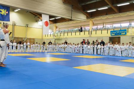 Am 27. September tobten 91 kleine Judoka beim Kuschelturnier über Oldenburger Matten. Nach einer gemeinsamen Aufwärmphase, in der spielerisch der erste Kontakt mit den Mattenbegleitern hergestellt wurde - diese wurden als Tunnel, Böcke und Wurfpartner genutzt - machten diese dann in kleinen Gruppen ihre ersten Wettkampferfahrungen. Für die wartenden Kinder war ein Parcours zum Klettern und Balancieren aufgebaut und die Eltern konnten sich die Zeit mit den Köstlichkeiten der Cafeteria vertreiben. Anschließend durfte sich dann jedes Kind das ersehnte und verdiente Kuscheltier mitsamt Urkunde aussuchen und es gab jede Menge strahlende Gesichter.