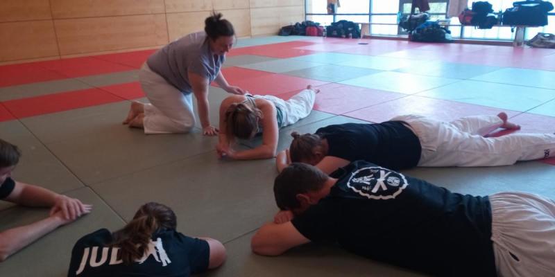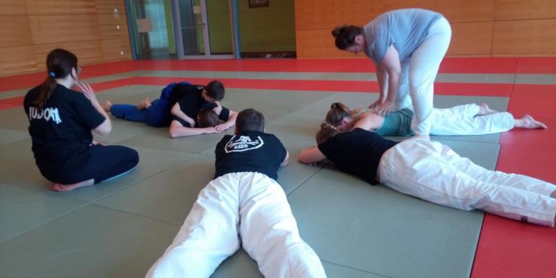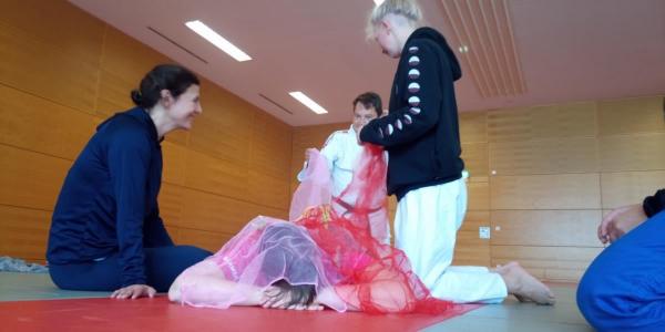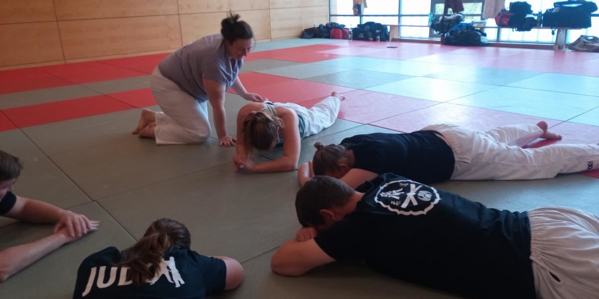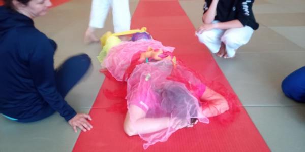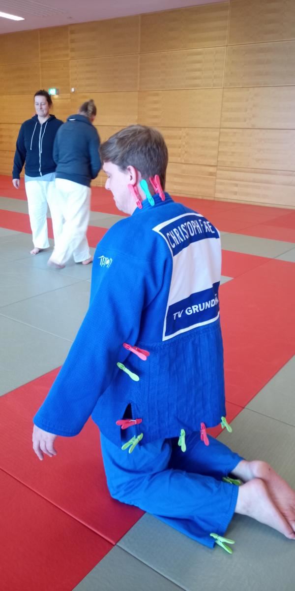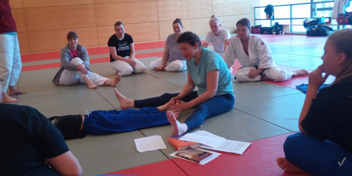 Zum Thema „Entspannungsübungen und -spiele für Kinder“ referierte Silke. „Stille Post“ oder „Geschenke verpacken“ wurde zum entspannten Gruppenerlebnis. „Wo steckt die Wäscheklammer“ war eine kleine Herausforderung, denn im dicken Judogi lässt sich dies nicht leicht fühlen.