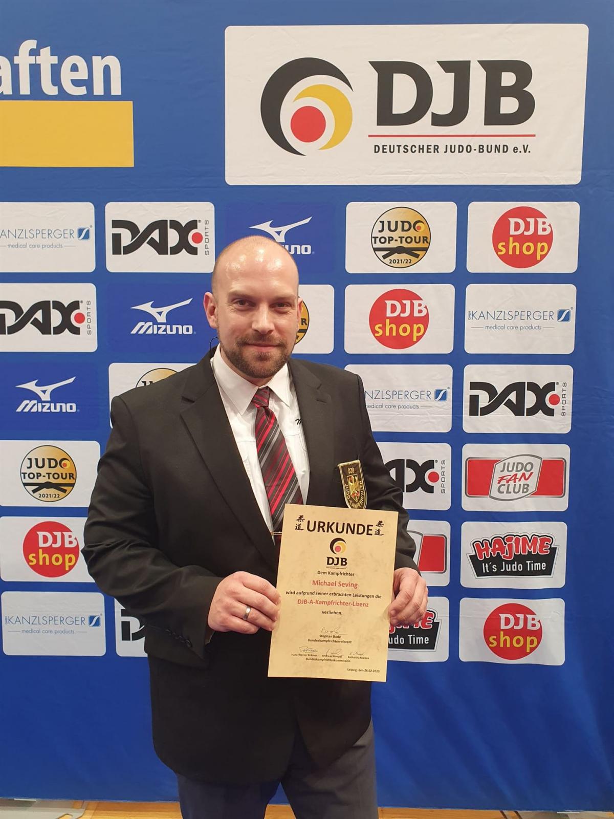 Bei der Deutschen Einzelmeisterschaft der U18 am 25. und 26.02.2023 hat der Kampfrichterkollege Michael Seving die höchste nationale Lizenz in Deutschland erworben. Somit kann sich der Kreis der Kampfrichter um einen weiteren DJB-A-Bundeskampfrichter freuen.