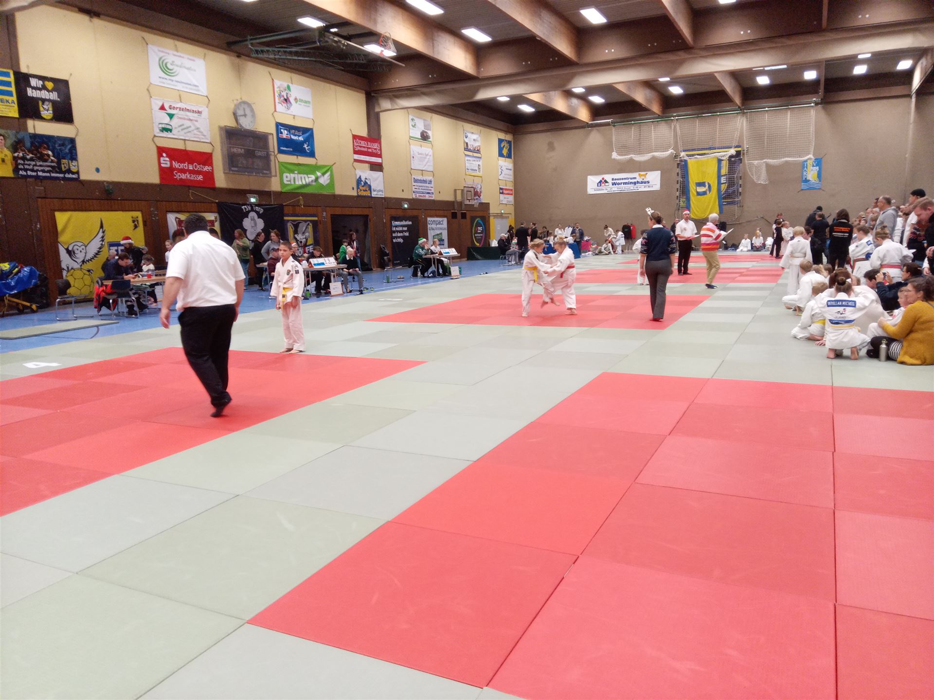 Beim großen Jahreshöhepunkt im Norden Schleswig-Holsteins, dem immer zur Adventszeit stattfindendem Nikolausturnier, wurden wieder Jung und Alt die roten Matten ausgebreitet. Die verantwortlichen Organisatoren vom TSV Tarp, Sabine und Gerd Zboralski und Katharina Okur-Zink, führten mit ihrer jahrelangen Erfahrung in Turnierplanung durch einen gut strukturierten Tag. Die Veranstaltung begann wie geplant um 10 Uhr und auch die letzte Siegerehrung konnte nach dem Ende der Kämpfe um 17:30 Uhr planmäßig beginnen. Insgesamt zeigten in dieser Zeit, auf bis zu 5 Matten, 314 Teilnehmer*innen tolle und beindruckende Kämpfe und wurden mit tollen Urkunden und Medaillen belohnt. Kampfrichter*innen und Tischbesetzungen hatten sich auch weihnachtlich in Schale geworfen und auch zu dem tollen Verlauf und der guten Stimmung der Veranstaltung beigetragen.