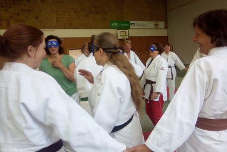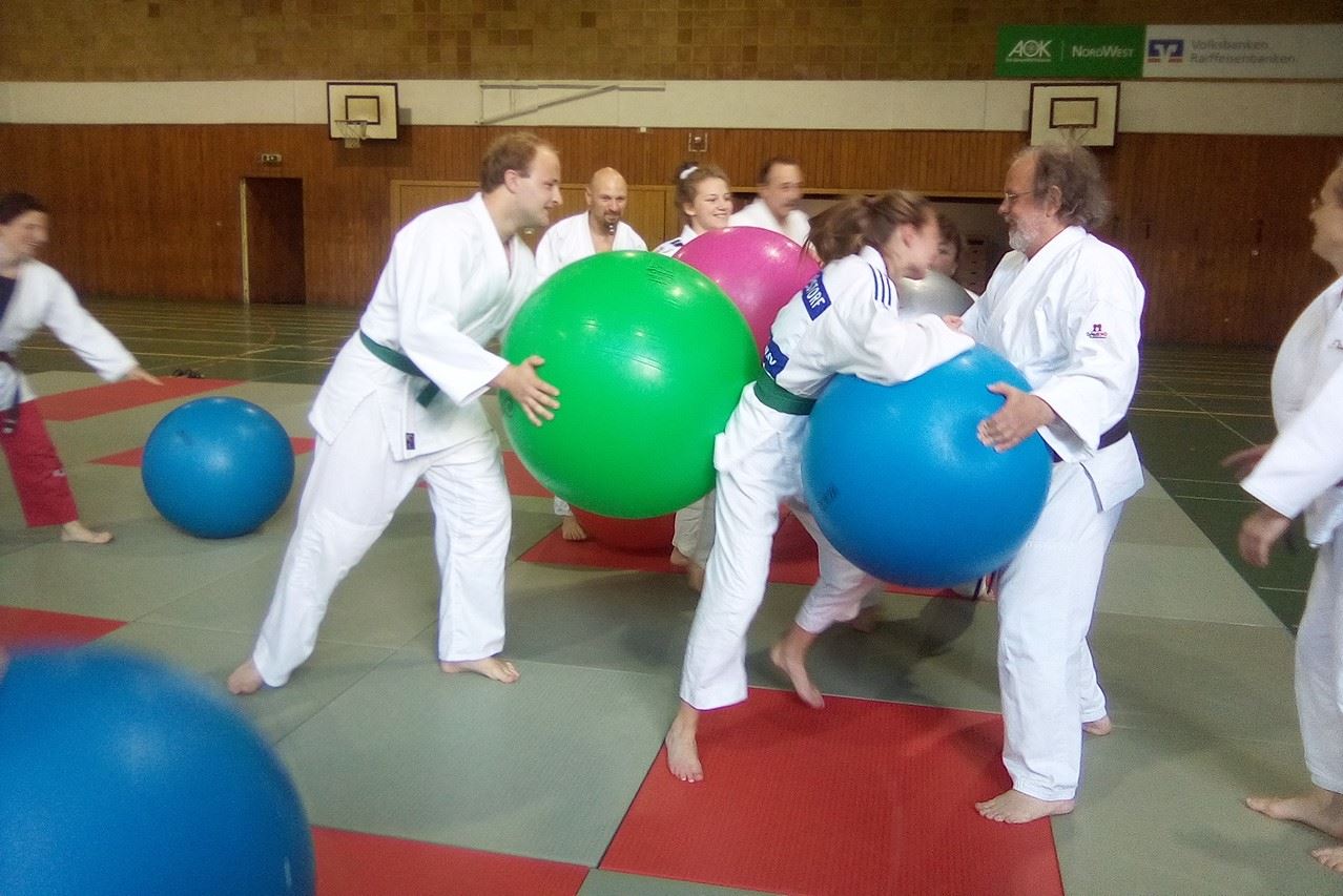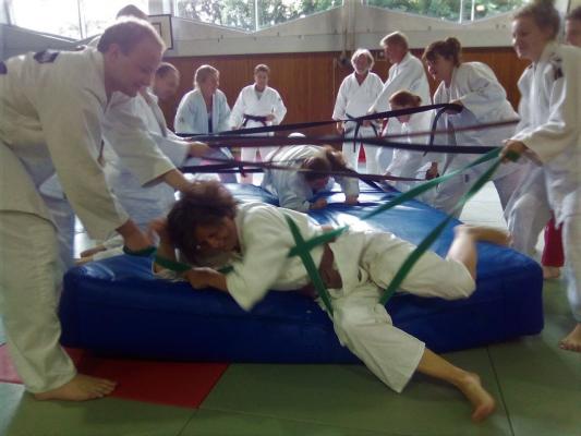 Im zweiten Teil ging es weniger um die Methodik und Judotechnik, sondern um die Motivation, Förderung und Steuerung von Judoka mit verschiedenen Auffälligkeiten. Im Vordergrund dieser Einheit standen Sport-Spiele zur Psychomotorik, welche nach praktischer Erprobung auch diskutiert wurden. Abgerundet wurde dies durch Katrin Höpper, welche als Spezialistin auf den Gebieten Stressmanagement, Coaching und Mediation, hier den Teilnehmern und Teilnehmerinnen wertvolle Tipps mitgeben konnte.