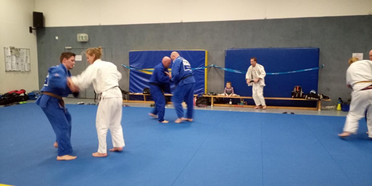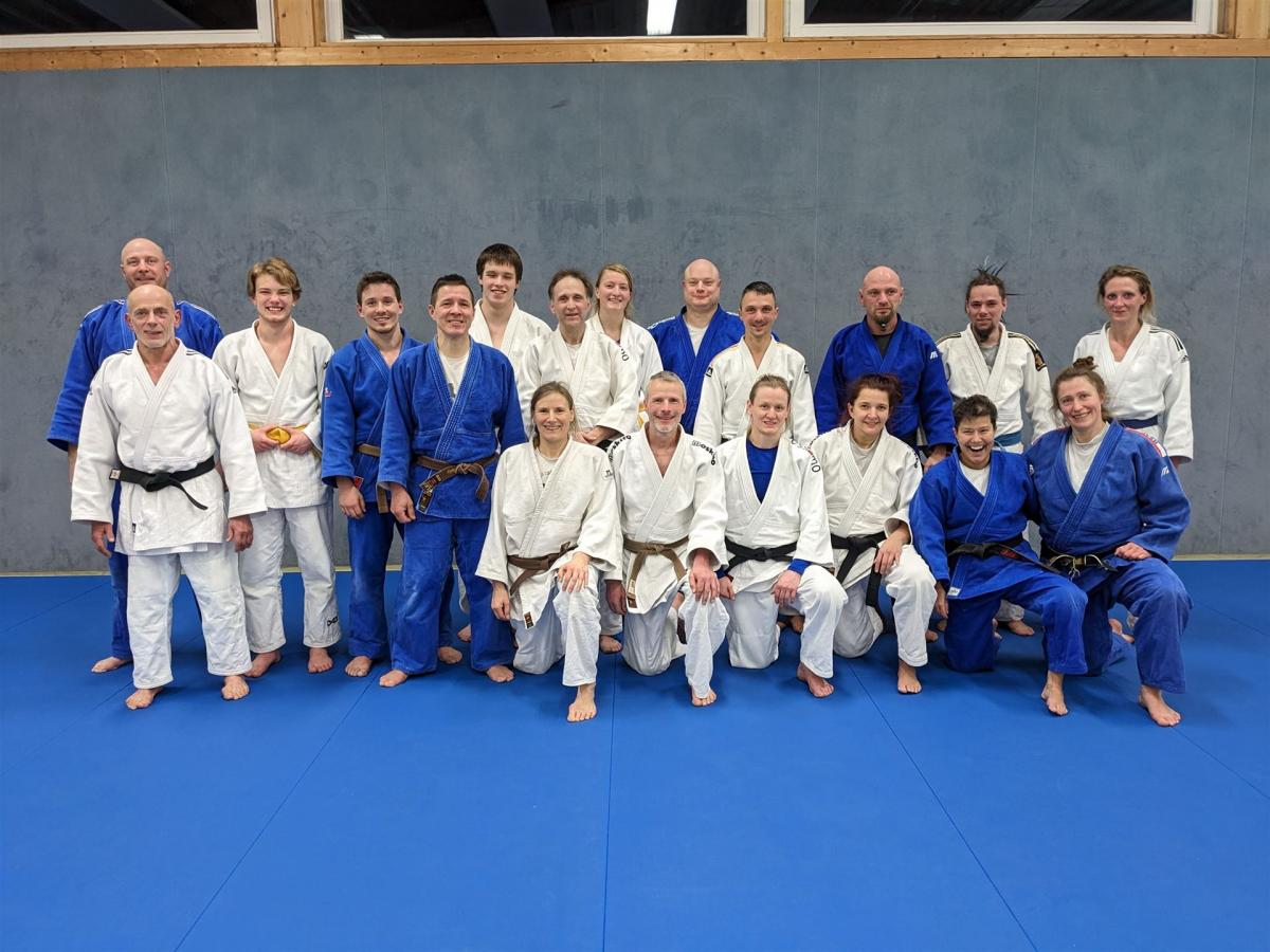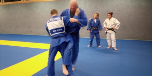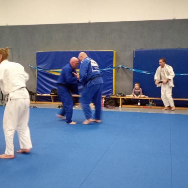 Für viele gibt es ein ganz klares Ziel und einen Grund für das harte Training: Starten auf der Deutschen Einzelmeisterschaft der Ü30 am 20. Mai in Bad Ems. Marco hatte für jedes Fitnesslevel und jeden Ausbildungsstand etwas im Gepäck. Nach dem Aufwärmprogramm folgten Techniken und Tipps für die Bodenarbeit. Anschließend wurden in zwei Gruppen verschiedene Situationen im Stand erarbeitet. Zum Schluss zauberten Marco Sieck, sowie Torben und Daniele Behnke noch beeindruckende Varianten von O soto otoshi und Morote Seoi nage auf die Matte. Das gemeinsame Randori war für jeden eine Ehrensache, auch wenn die Kräfte irgendwann am Ende waren.