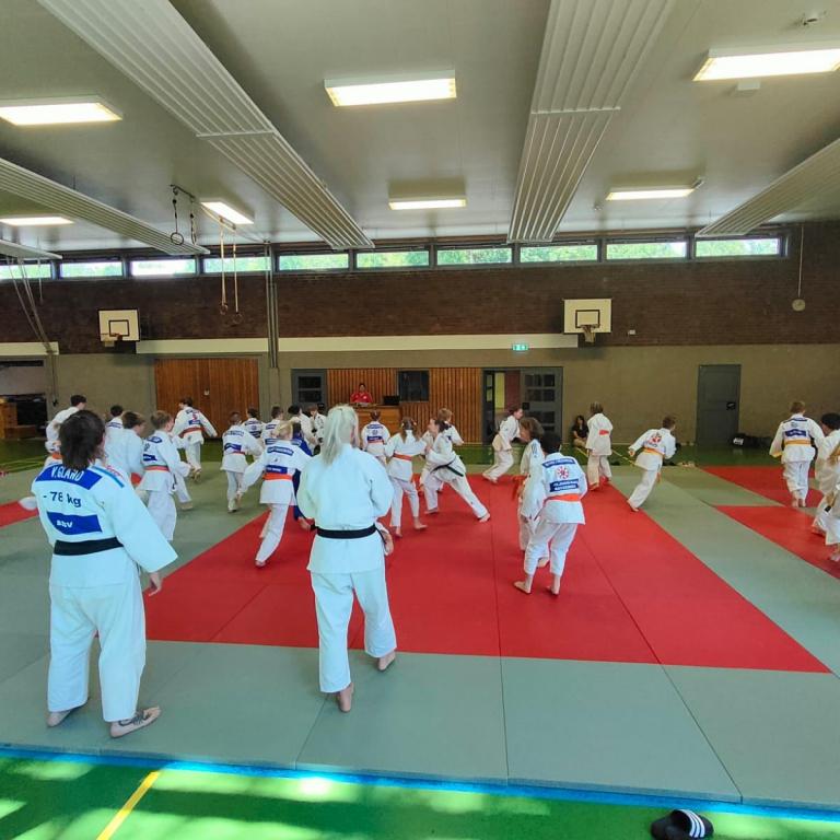Bei strahlendem Sonnenschein und warmen Sommerwetter am Samstag, den 1. Juni in Ratzeburg, sahen die 37 U13-Judoka aus ganz Schleswig-Holstein nach drei Stunden Training eher aus, als wenn sie in den Pool gesprungen wären, als dass sie mit dem Talentpool trainiert hätten, so nass waren Anzüge und Haare.