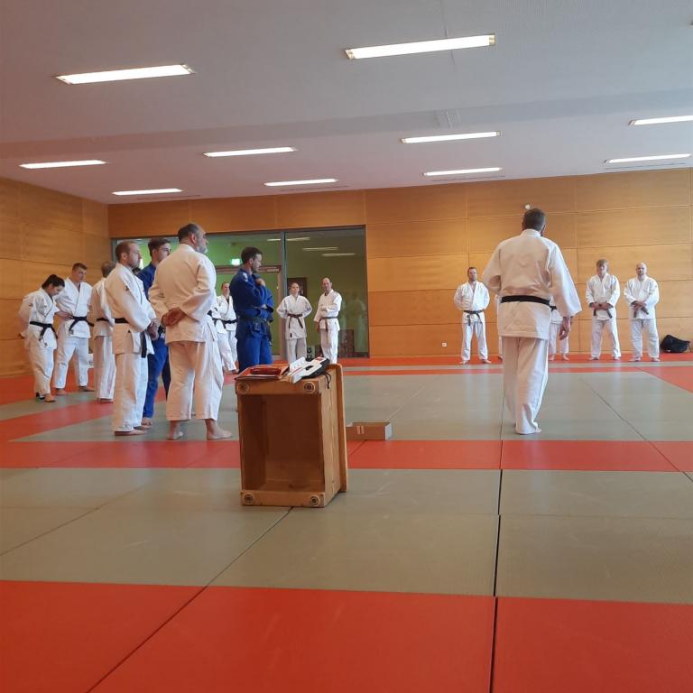 Der Samstag stand ganz im Zeichen des Lehrgangs zur Lehrbefähigung zum 2. Dan, der unteranderem von keinem Geringeren als dem ehemaligen Judo Olympiasieger Ole Bischof geleiteten Praxisteil gestaltet wurde. Mit seiner beeindruckenden Expertise und seiner langjährigen Erfahrung im internationalen Judosport vermittelte Ole den Teilnehmenden nicht nur technische Fertigkeiten, sondern auch wertvolle Einblicke in die mentale und taktische Seite des Sports. Die Atmosphäre war geprägt von Eifer und Begeisterung, während die Teilnehmerinnen und Teilnehmer von den wertvollen Ratschlägen und persönlichen Anekdoten des renommierten Trainers profitierten.